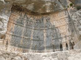 designs on the cleft near the river outside of the Bishapur. The stones and